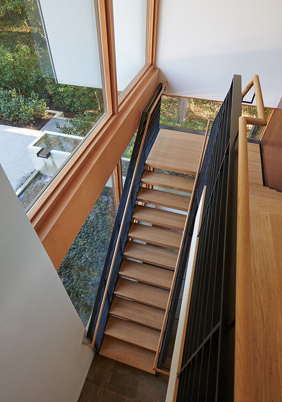 Both new office and existing home overlook a new formal lawn that opens in turn to the forest and river beyond.