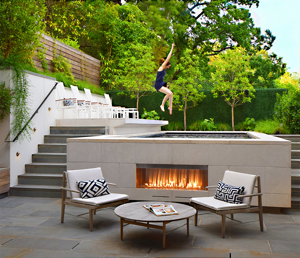 Working from the outside in, the design began by fitting a new pool and terrace in to the rocky sloped rear yard, filling the space. The interior responded to that landscape with a renovated kitchen at the terrace level and a screened porch above.