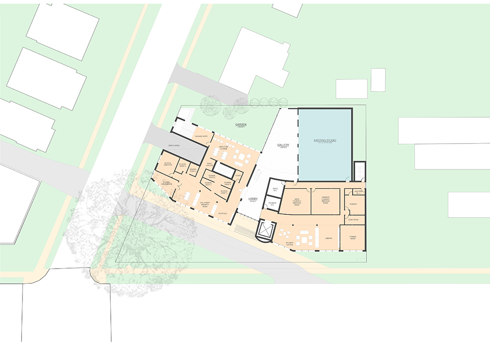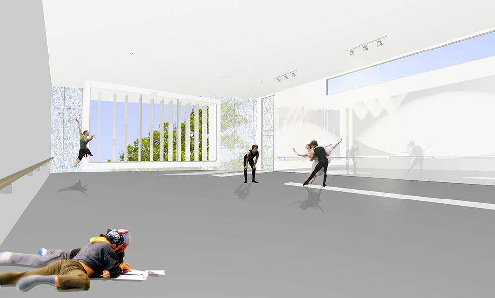 Throughout the building, dance is celebrated through the choreography of the movement of users within the building and through the visibility of dance activity both within the building and from the street.